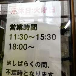 | 営業時間 | 11:30〜15:30/18:00~ |