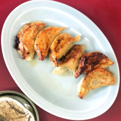 メインのラーメンに、焼き餃子450円を追加します。他に五目チャーハンも注文し、壁のTVを見ながら着皿を待ちますよ。