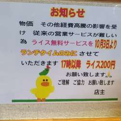 | 営業時間 | 11:00〜14:00/17:30〜 |