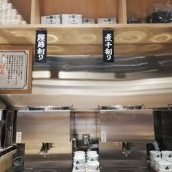 | 備考 | スープ割りは「煮干」「鰹節」「柚子」の3種類から選べる。(セルフ式) |