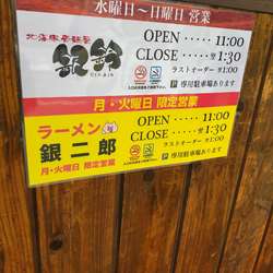 | 店名 | 北海豚骨麺屋 銀鈴 |