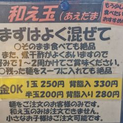 | メニュー | メニューの写真を見る 煮干しラーメン 800円 |
