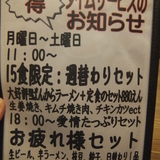 | 備考 | 東京豚骨拉麺「しゃかりき」の姉妹店。2009年3月8日オープン! 満腹セット・週替りセット・ランチタイムサービスなどあり |
