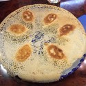 まぁ先ずは薄膜の皮から崩さないと食べられないので、パリパリと崩して一口…。