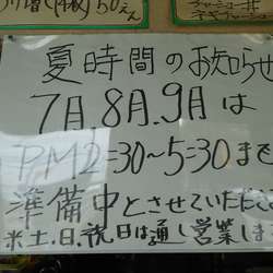 7月、8月、9月はPМ2:30~5:30まで準備中とさせていただきます。