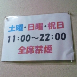 | 喫煙 | 喫煙可 土・日・祝の11時~22時は禁煙、店外入口横に灰皿有り。 |