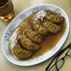 醤油少なめ、たっぷりのお酢、ラー油、胡椒で。