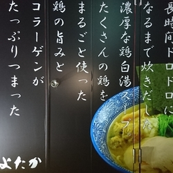 | メニュー | メニューの写真を見る 特製濃厚醤油鶏白湯そば 1000円 |